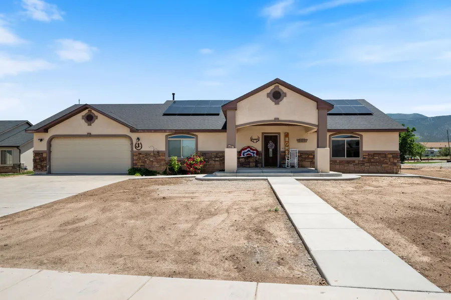 Discover this beautiful home tucked away in a quiet neighborhood, offering peace, space, and stunning views. Sitting on nearly half an acre, there's plenty of room to add a workshop, garage, or garden separate from the fully fenced backyard, perfect for pets, entertaining, or relaxation. Inside, you'll appreciate the spacious open floor plan with soaring vaulted ceilings, a large kitchen featuring granite countertops, abundant storage, and a convenient walk-in pantry. The primary suite opens directly onto the large, covered patio, making it easy to enjoy the panoramic mountain views. An unfinished basement with installed electricity and plumbing offers additional potential for customization, while a workshop space in the garage, complete with ventilation, adds even more functionality to this well-maintained and welcoming home. Buyer to verify all information, deemed reliable, however buyer to verify all info including utilities, rental restrictions, and HOA information if applicable.