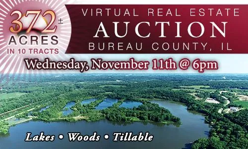 372+/- Acres in 10 Tracts Lakes, Woods, Tillable Hunting & Fishing Paradise Potential Opportunity for Great Camping Sites Electric Access Throughout Several Tracts Beautiful Building Sites Relaxing Outdoor Scenery Away from the City Productive Tillable Farmland Bid on any Tract, Combination of Tracts or the Entire Property! ONLINE BIDDING AVAILABLE