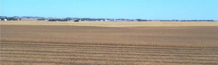 Land Description: The Benskin, Inc. farm is a nearly level to very gently rolling improved tract. The improved building site is located the Southwest corner of the farm along the west road. The building site consists of an older grove of trees, four modern machine sheds, and four grain bins. The 359.7 crop acres are all in one large contiguous field. The farm is bordered on the south by a county blacktop road (A 15). The farm is bordered by a gravel road on the west (280th Ave.) and a gravel road on the east (290th Ave.)