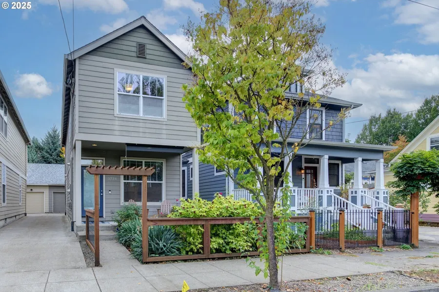 Welcome to this updated 2bed, 2bath residence offering 1,275 sq ft of thoughtfully designed living space across two levels and over $100,000 in upgrades. Perfectly positioned in a coveted NE area, this home combines timeless character with modern sophistication, all within walking distance to Irving Park, local eateries, and vibrant neighborhood amenities. From the moment you arrive, the curb appeal abounds with a manicured garden framed by a charming fence and an inviting covered front porch. Inside, the main level features rich new hardwood floors and sun-filled living spaces that exude warmth and comfort. The stylish kitchen impresses with gleaming white quartz countertops, modern cabinetry, and finishes; ideal for both everyday living and entertaining. The living room centers around an updated gas fireplace, offering a cozy space to unwind. A updated air conditioning system ensure comfort. while thoughtful updates throughout highlight the home's meticulous care. The primary suite offers a serene retreat with a luxurious walk-in shower, contemporary fixtures, and garden view. Ample storage is found throughout the home, ensuring practicality without sacrificing style. Upstairs, soft new carpeting complements two spacious bedrooms and two beautifully appointed bathrooms. Outdoors, the private backyard offers a true urban sanctuary with lush landscaping, a charming sitting area, and plenty of room for entertaining. A single-car garage-detached yet fully divided for exclusive use, adds value and convenience. Every detail of this home has been crafted for effortless elegance and livable comfort. Experience the best of NE Portland living, where classic charm meets modern luxury. [Home Energy Score = 7. HES Report