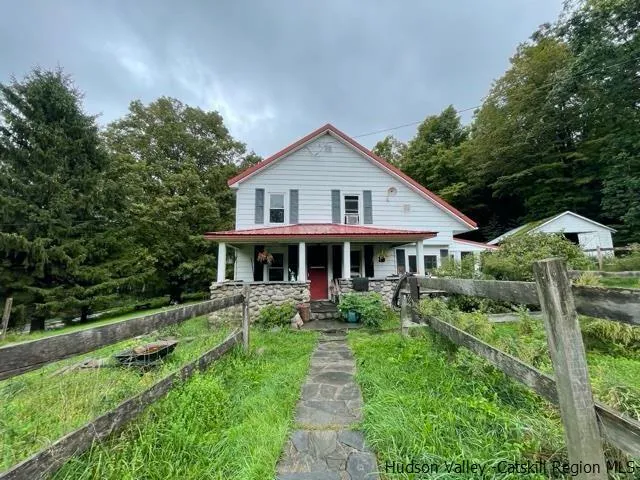 This charming and cozy farmhouse-style cottage would be suitable for a full-time residence or the perfect weekend getaway! The setting is 2.2acres of peaceful, private, and quiet, having everything from a sharp and modern red tin roof, a screened in porch and a 2-story 3 bay garage for storage or a studio. The bathroom has been updated recently with tile flooring and walls. Gas range cooking in the kitchen and a dishwasher too. The living room features wood beams on the ceiling and a wood burning fireplace to stay warm on cold winter nights. The porch covered entryway is perfect for a rocking chair as you look across the yard toward the scenic mountain ridge. Located just 2 miles from public walking access at the Ashokan Reservoir, 30 minutes to Kingston, 20 minutes to Stone Ridge, and 35 minutes to New Paltz