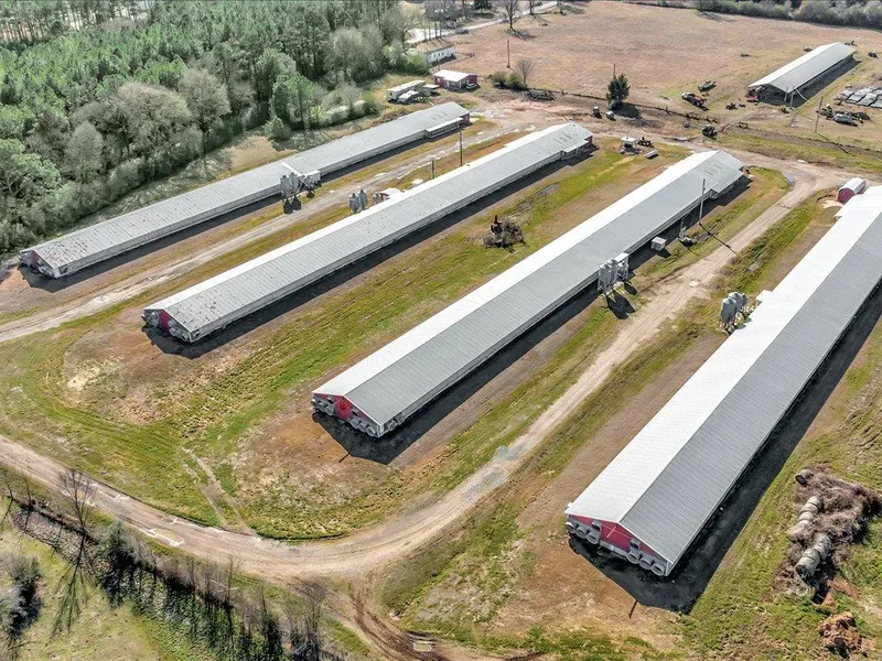 This farm was established in 1995 and 4 more breeder houses were added, (2) 1998 and (2) 2000.The farm is currently owned by Tyson which includes: (6)- 42x450 Breeder houses with 9500 hens and 1000 roosters,42x0270 Litter Barn, a 30x40 2bd/1ba Metal Hand House built in 2021, a 2bd/2ba Single wide Mobile Home, Big Dutchman/Roxell Chain Feeders, Half House Control Room, (2) Generators-150kw (4 Houses), 80KW (2Houses), 3 Wells and city water back up, Propane for incinerators only, (2) incinerators, 30x40 Shop, Aerobic Septic ( metal house and single wide)