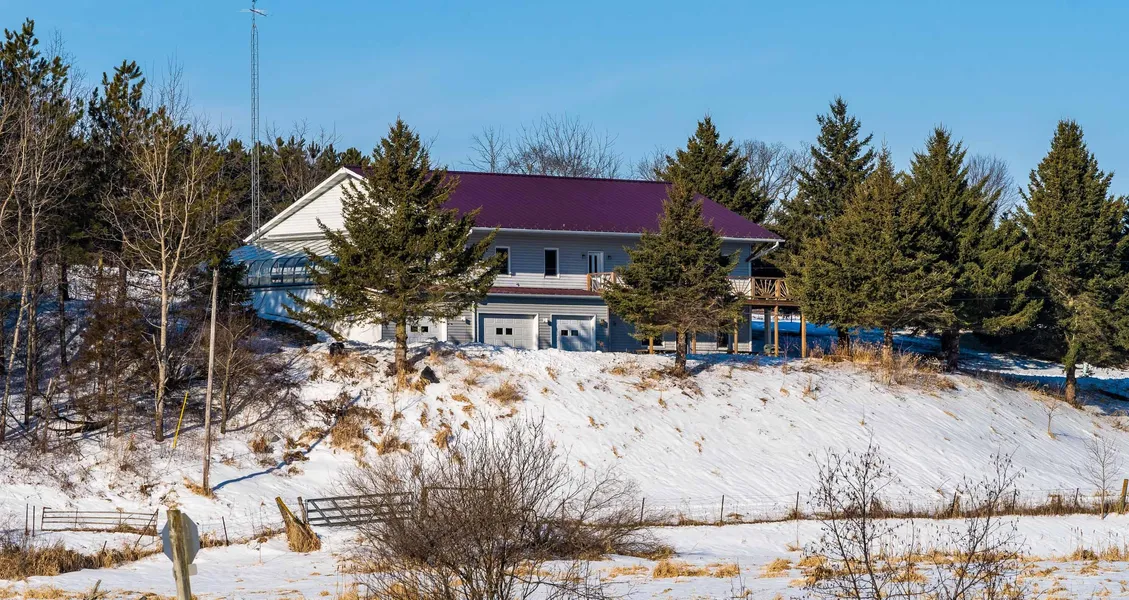This gorgeous country oasis boasts a quality custom 2-story house with 5 bedrooms and 3.5 baths all nestled on 22 acres near the Little Baraboo River. This 4,774 sq ft. home has multiple recent home and property updates. (See expansive list below) The home has a spacious living room that is open to the dining room that also flows into a separate family room and a large 4-season sunroom. There is ample space to entertain for gatherings of all sizes. All with the sweeping views of the Elroy-Sparta bike trail, Little Baraboo River, and bluffs all in view from the front of house, expansive front deck and living room. This home has a forced air/ hot water heating system, or the public areas of main level can be heated with the high-efficiency wood burning stove insert in the family room fireplace. There is a notable master suite with a spacious walk-in closet, custom kitchen with an abundant amount of storage and small eat-in area, plus separate formal dining room, laundry, an additional bedroom, and an office/bedroom round out the main floor. Walkout level has 2-bedroom suites with adjoining baths, generous gathering room, along with a large storage room, dream workshop and oversized 2 bay heated garage plus separate third unheated bay.