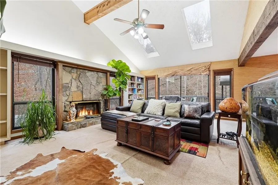 Mid-Century Masterpiece Meets Private Orchard Oasis! Located in Duluth's coveted Howell Wood community, this 5-bedroom, 2.5-bath Mid-Century Modern home offers nearly 3,800 sq. ft. of sun-filled living space with iconic architecture and modern convenience including a Honeywell "Full-house" generator. Enjoy a quiet, established neighborhood just minutes from Downtown Duluth's shops, dining, and festivals. Set on a private 0.47-acre lot, the outdoor space features a producing fruit orchard, a year-round running creek, and a thoughtfully cleared yard ideal for play, pets, or gardening. The finished walk-out basement adds flexibility with a custom bar, and a gym. Inside, beamed cathedral ceilings, Skylights, sliders and large windows flood the home with natural light. The open layout flows to a full-length deck, while the primary suite offers a private deck extension perfect for quiet mornings or evenings. Homes of this caliber and character rarely come to market-don't miss this exceptional Mid-Century Modern retreat.