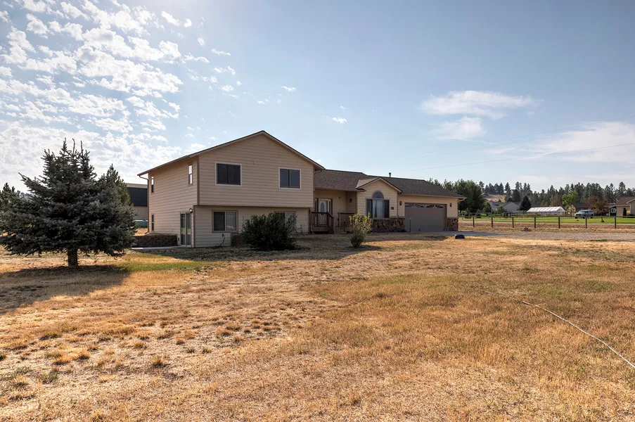 Beautiful tri-level home with 4 bedrooms and 3 baths. Roomy acreage, completely fenced & cross fenced, garden area, front porch, back deck. Excellent square footage for your family and comfort. 3 Bedrooms and 2 full baths on upper level. Large living, dining and kitchen area on main level with access to garage and glass door onto the east deck area. Lower level features family /den room with with glass door to yard, large bedroom and full bath and an office. Valley floor location with private septic and private well. Also includes Supply Ditch irrigation water rights. Big views in all directions from this central valley location, close to Missoula or Stevensville on the Eastside Highway. Air conditioned comfort, propane utilities, stainless appliances in kitchen and also includes washer and dryer on the lower level in the utility room. Green house for the gardners! Ready for immediate occupancy. You will appreciate the space this lovely home has to offer you and your family.