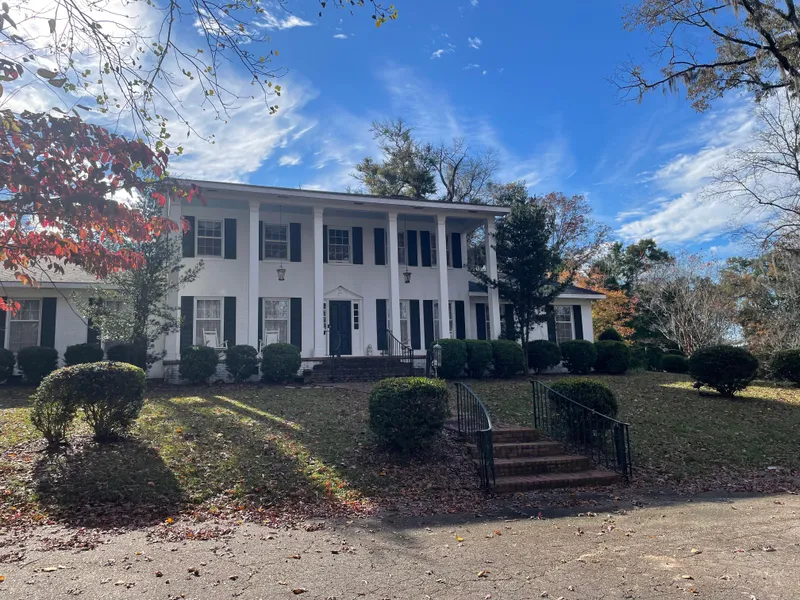 This one-of-a-kind beauty sits on top of a beautiful wooded lot just minutes from the historic downtown square. The possibilities are endless with some updates, this could be your forever home. Upstairs: 4 bedrooms and 2 baths, with a sitting area at the top of the stairs. Eat-in kitchen, large formal dining room, along with a den, large laundry room with a half bath and a master suite round out the downstairs living area. Features include 9' ceilings and crown molding. Access to the basement inside. There is a large front porch with brick floors and a brick patio in the back...perfect for watching wildlife and entertaining. There is a log cabin on the property that can be negotiated.