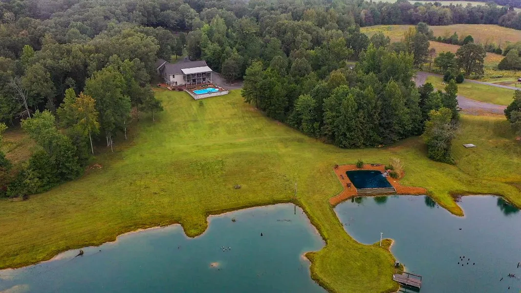I invite you to take a tour of this private & unique HUNTER, LAND LOVER & FISHERMAN'S dream home. Boasting 7 bedrooms 3 bathrooms situated on 90+acres. This beautiful land with excellent road systems in place is manicured to provide maximum wildlife habitation. Prime deer, turkey, rabbit, squirrel & dove hunting. The manicured land provides additional income from farming and hunting lease. Pasture area for horse or cattle with year round spring fed water supply. Enjoy the picturesque panoramic views from the elevated decks and in-ground pool area with Bermuda grass in the backyard overlooking the private 3 Acre Lake. For the FISHERMAN this 3 Acre private lake is stocked with bass & bluegill. Has a private dock with many structures in place to create a trophy Lake fishing experience. This designed trophy lake has its own well system feeding the waterfall & over spill to the private Lake. Inside this unique home you will appreciate the gorgeous yellow pine throughout with white oak hardwood flooring. And so much more. Additional features are custom stamped concrete from walkout basement to pool area. Beautiful landscaping. 3 wells. Shop area. Private roads. Cedar cut beams from the grounds and more.