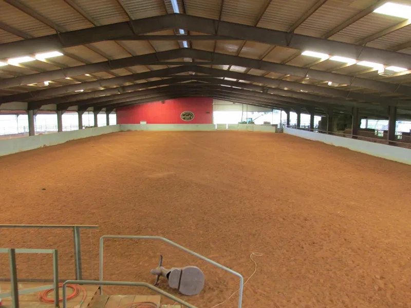 Cross Fire Indoor Arena is located on the Cross Fire Ranch. This 296’ x 160’ arena has been known to host bull fighting, dog trials, team roping, bull dogging, and other rodeo events. Much thought has been put into this arena with horse stalls, wash bay, tack room, corrals and paddocks, announcer’s booth with a little kitchenette, commercial kitchen and concession booth. The red dirt arena has an electronic chute release system. There is also a 265’ x 60’ lean-to shed connected to the arena for animal events, fairs and shows.