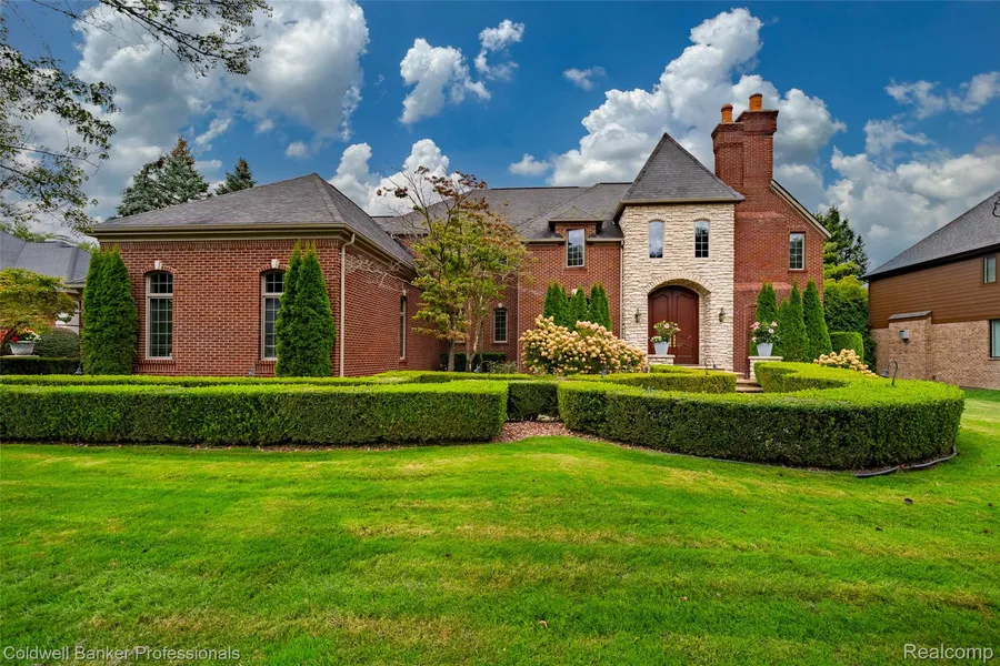 This Grand Home is truly fantastic and checks all the boxes. Walk into the marble floor 2-story foyer with curved majestic staircase, leading to open concept formal Living room, Dining room, Family room, and expansive Library all with 10 foot ceilings. Wainscoting and crown molding all throughout the first floor. The large windows give expansive views of the backyard and create natural light throughout the home. Curb appeal, 5 bedrooms, 4 full and 2 half baths. Oversized 4 car garage with EV charger, Finished lower level, incredibly beautiful landscaped multi-level patio with fire pit. The Kitchen cabinets are Downsview. Kitchen with large granite island ideal to gather around for entertaining connected to a family room with fireplace. Newer appliances - Bosch, Thermador and sub-zero. Huge nook and walk-in pantry. The second level boasts the Primary Bedroom with its cozy sitting room, Tub, and shower. The other two rooms with Jack and Jill Bathroom. The 4th Bedroom has its own bathroom suite. Lower level bedroom has garden and egress windows. The Expansive lower level with wet Bar, game room, and Full bath. Newer mechanicals. Gated community.