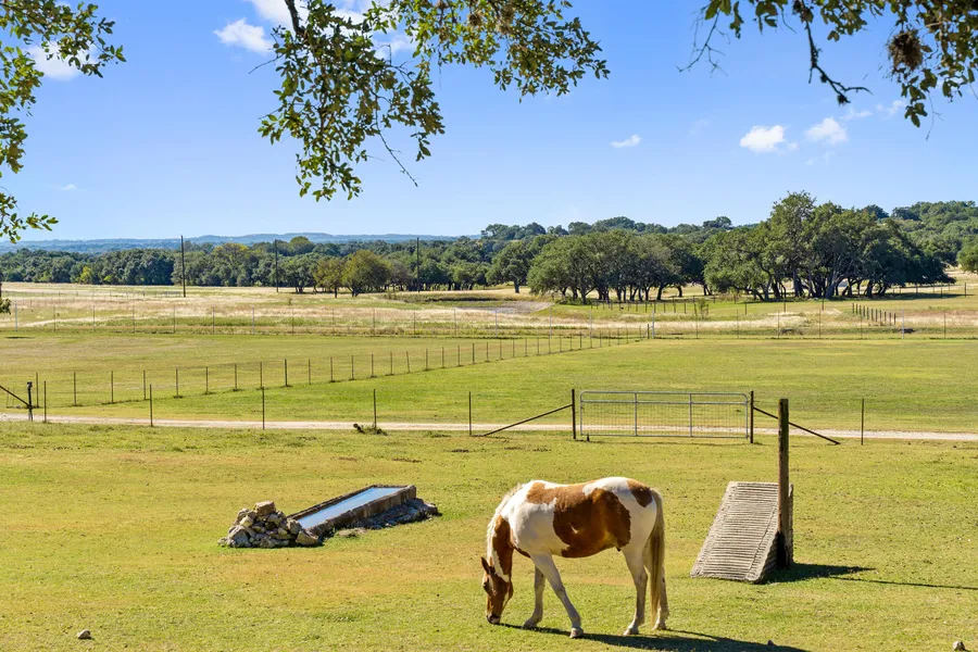 92.05 Acres that is manicured to Perfection!!!! The home on the ranch was completely renovated in 2017 and is absolutely stunning. The home and bunkhouse offer approx. 2100 sq ft of living space with the main house being 1 bed and 1 bath and then the bunkhouse is 2 beds 1 bath. There is one water well on-site. The existing well is 384 ft deep and offers 60 gallons/minute. There are several sheds/barns on site and some nice livestock working pens. The entire ranch is fenced and cross fenced. Some parts of the ranch offer open pastureland along with some thicker Live Oak country that provides great cover for livestock. The ranch is under an ag exemption for low property taxes. There are 2 ponds on site that are great for watering livestock. The hill country views are stunning!!! This is a very well-maintained ranch in one of the fastest growing areas in the USA. One hour to Austin and San Antonio. There are 2 ways to access the ranch. One is on Rolling Hills Rd and the other is a deeded access thru the Landing Subdivision which provides paved roads all the way to the ranch entrance. This is a must see!!!