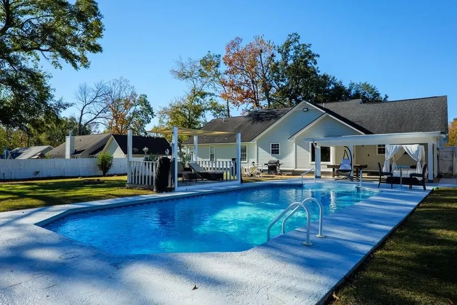 Welcome to 3759 Creekwood Dr, a 4-bedroom, 2-bathroom home located on over a half acre lot in coveted North Lowndes County. This exceptional property presents an unmatched combination of indoor style and outdoor living appeal, perfect for both every day enjoyment and entertaining. Step into the private backyard paradise where an inviting sparkling in-ground pool awaits with a fully fenced yard that delivers privacy and plenty of space to relax and play. The covered patio offers the ideal spot for hosting summer gatherings with friends and family. Inside, the heart of the home shines with a built-in modern electric fireplace in the living room, enhanced by custom lighting and built-ins that create cozy ambiance and stylish display space, blending contemporary comfort with functional design. The open layout ensures effortless flow from entertaining spaces to private retreats. The primary suite is s standout, featuring its own accent lighting as well as fireplace and built-in details that elevate this peaceful sanctuary. Additional highlights include an updated kitchen, split floorpan. Located 13 minutes from Valdosta State University and South Georgia Medical Center, this home offers the convenience of being close to everything South Georgia has to offer. As a bonus, there's a one year home warranty in place for peace of mind. Schedule your showing appointment TODAY!