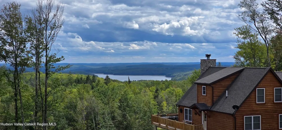 The Outdoors, near the top of Aden Hill Mountain at nearly 2,200 feet elevation, is what your well appointed luxury Western style Lodge is all about. Make this dramatic Home your own comfortable get-away with its high efficiency ''Energy Star Rating'' structure, HVAC, and appliances. The Lodge is faced with Tennessee Cedar log-style siding and has a log perimeter railing to wrap-around the Deck. This outdoor area is spacious enough for family gatherings and large group BBQ's looking out over the dramatic panorama across the Neversink Valley to the Neversink Reservoir and towards Thunder Hill and the Shawangunks. Enter your Home to be greated by a massive Fieldstone Fireplace and Cathedral Ceiling in the Great Room on the Main Floor. There are Knotty Pine ceilings and walls throughout most of this five-bedroom Hacienda Style home, accompanied by traditional Rustic Ranch Timber details. The open space Gourmet Kitchen, with Granite counters, custom Hickory cabinets and Stainless-Steel Whirlpool appliances, welcomes all of the Chefs in your family. The Main Floor has the Family Room with an exit to the yard, large wrap around vista windows, a comfortable wood stove, and service bar. The Master Bedroom Suite with a private two-room full Bathroom, and two Guest Bedrooms sharing a full Bathroom. Upstairs is the quiet Library with a Juliette Balcony behind a Rustic Log railing overlooking the majestic open Great Room. Two Bedrooms with views of the Valley share a full Bathroom. The Lower Floor of your Home has the Entertainment Room, Game Room with Knotty Pine features, and Dry Bar with a full Bathroom, along with a two car garage with powered door and an exit to the yard. There are two large Closets for all of your Outdoor Gear. Near your Home is another four-car detached Garage/Workshop with ceilings tall enough to service construction equipment. Upstairs in this 50'x30' building is an open dormitory finished with Knotty Pine Tongue&Groove paneling and warm carpeted floor. There is also an additional above ground poured concrete barn foundation 65'x24' near the bottom of the driveway ready to build on. A five acre meadow is across from the barn. There are many activities available within the nearly one hundred acres of your Private Estate including hunting, fishing, hiking, ATV and snowmobiling for all enthusiasts. Enjoy this rural Region less than two hours from New York City, via Palisades Pkwy to Rt 6 to Rt 17 to Exit 100A (Liberty) for Rt 55 northeast towards the Neversink Reservoir. Nearby is the large Neversink Reservoir which offers boating and fishing, with several State Parks in the area. There is entertainment, cultural, and culinary opportunities in nearby LIberty, LIvingston Manor, Roscoe, and Monticello. Walk thru tourVideo tour:Floor Plans: