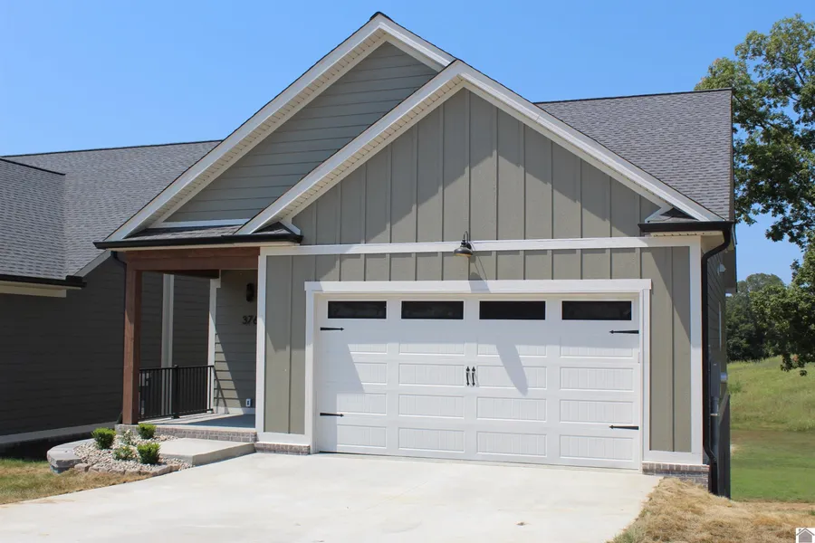 Immaculate 2025 custom built home located a short walk from lake Barkley, Enjoy year round water views, Go take a dip in the beautiful pool, use the exercise area or just hang out around the Cabana house all included with your HOA, This home features 3 bedrooms 2 1/2 baths, Master bedroom has double vanity and large tiled shower and soaker tub and walk in closet. Open concept floor plan, Custom kitchen with Cafe' appliances, custom cabinets with granite counter tops, Laundry on the main level. Large screened porch over looking the lake. Lower level offers 2 bedrooms 1bath, family room with walk out to a large covered patio. Buyer to verify square footage, Dock slip and storage units are available. The picture of the Finished house is example only of finished home