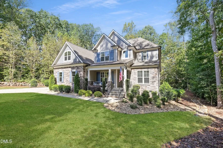 Welcome to The Estates at Chapel Ridge, a premier gated community offering resort-style amenities and an exceptional lifestyle. This immaculately maintained stunning home sits on 1.78 acres and features 5 bedrooms, 4 baths plus a bonus room and dedicated office, providing both space and flexibility. The expansive open floorplan is anchored by a first-floor primary suite, while the chef's kitchen boasts high-end finishes, abundant cabinetry and generous workspace. A huge screened porch with an attached deck makes entertaining seamless and the family room with fireplace is the perfect place to gather. Beautiful coffered ceilings in both the dining and family rooms add elegance and architectural detail. Thoughtful details include a 3-car garage, abundant storage, and a Generac whole-house generator for year-round comfort and peace of mind. The neighborhood elevates daily living with an impressive list of amenities: pool, tennis courts, fitness center, playground, clubhouse, picnic and barbecue areas, plus a party room - requires membership and additional costs. This home has barely been lived in, the condition is like new. Located within minutes from historic downtown Pittsboro, UNC-Chapel Hill and UNC Hospitals. Please remove shoes.