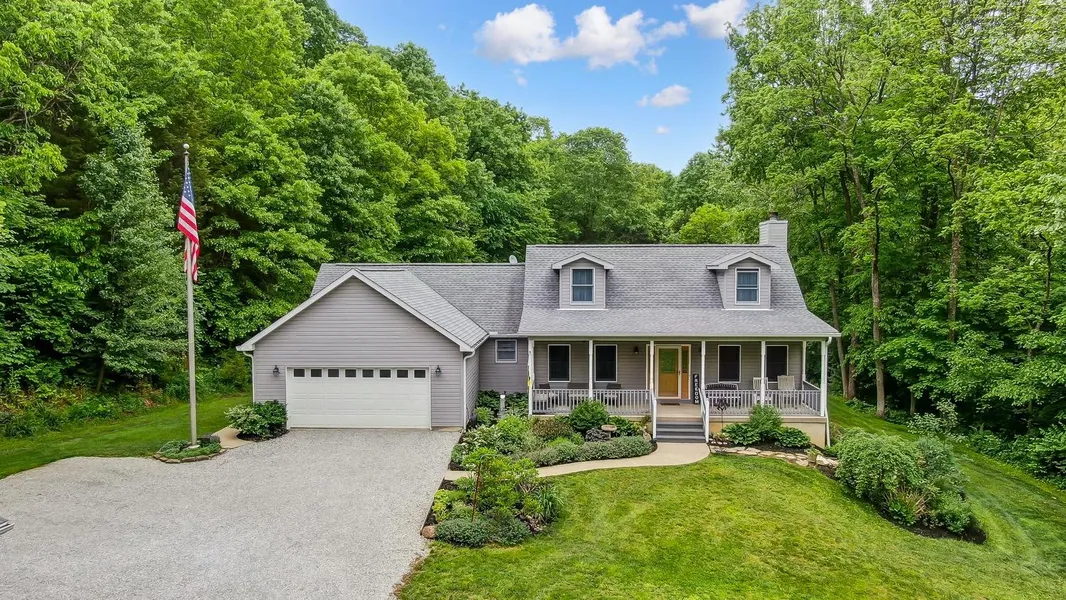 Absolutely Stunning & Private, Nature Lover's Dream on a 10.7 Acre Wooded Lot w/ Creek that Backs Up to East Fork Lake! Custom Built Cape w/ Covr'd Porch, Tile & HWFlrs, 1st Flr Master w/ Adjoining BA & WIC. Kit w/ Walkout, Living Rm w/ Built-Ins Shelves & Stone WBFP. 2- 20x12 2nd Flr BRs, Partially Finished W/O LL w/ Full BA, Man Cave (Safe Rm w/ Heavy Door). Att 2-Car Garage, 20x30 Detached 1.5 Car Garage/Workshop, Tiered Deck & Gorgeous Landscaping w/ Koi Pond. Roof '17, HWH 18, Deck '20.