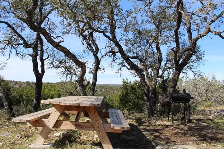 Only 19 miles southwest of Rocksprings with elevations of 2180' to 2320', this scenic ranch is bounded by a private road on two sides. A large heavily wooded canyon is surrounded by high mesa on three sides. The live oak, shinoak, pinon pine, grama, buffalo and bluestem habitat is home to whitetail, turkey, axis, dove, quail and feral hogs. The ranch includes a Cabin,32ft camper, 2 tree blinds, 2 box blinds, 2 hog traps and 3 feeders, 2 water troughs, picnic table, 250 gal water container, with a quarter interest in an adjacent windmill water well. Ag exemption in place for tax calculations.