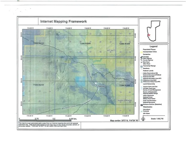 This is a patented mining claim called Baldwin/Big Wonder AKA The Wonder Group. It contains 11 claims. There is a 390' shaft and 600' feet of drift per Weeds, The Mine Handbook 1922. The mine was originally operated by the Jerome-Oatman Mining Co. from 1915-1917. It is located just south/southwest of Silver Creek Road. Latitude: N 35 Deg 03 Min 30 sec. Longitude W 114Deg 25 Min 43 Sec. Commodity: Gold Lode and Silver. Owner/Agent. No legal access or road to property. Must hike to it. Longitude and Latitude plotting is approximate and obtained from Mohave County GIS Mapping Public System. You may go to Mohave county government website and access the same mapping system. Good apps to use are onXHunt, Land Glide, and others that may be downloaded to your mobile phone. No utilities to property. One of the sellers is a licensed R. E. Agent in Arizona. Sellers will look at offers and consider a 1031 exchange or trade.