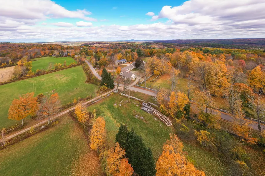 Looking for an idyllic home in the country? This romantic 38-acre farmstead offers an incredible opportunity to steward a scenic parcel that can fulfill your every dream. With panoramic ridge-top views of woods & open fields, it's a self-sustaining package featuring a sprawling antique farmhouse, well-appointed commercial kitchen (with its own 3-bedroom septic system), and 2 well-ventilated barns with water & electricity to shelter animals or perhaps adapt into a rustic studio. Here you'll find a quiet place to enjoy country living with your horses, goats or alpacas who'll have room to roam fenced verdant pastures and stonewalled woods. The updated and recently painted 18th century cape (with a 19th century wing) has modern stainless kitchen appliances, a new Viessman propane boiler, Koehler generator and two woodstoves to keep things cozy. A 4-bay post & beam equipment shed has a roof-mounted photovoltaic array that captures enough sun power to virtually eliminate electric bills.