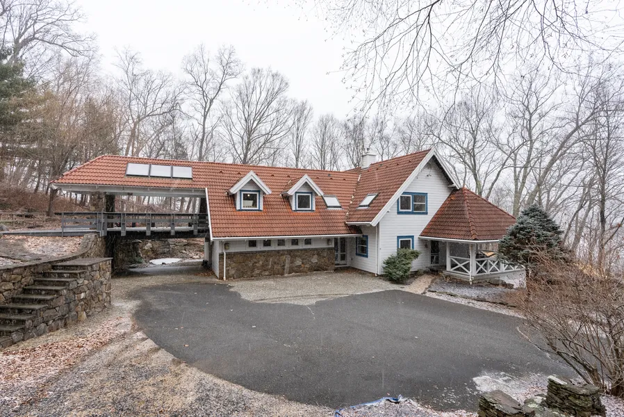 Welcome to this stunning zero-energy hilltop retreat in the heart of Sharon, Connecticut, built by Denmark-based Trelleborg. Nestled on over 13 acres (and including a .4 acre lot on Mudge Pond), this 4-bedroom, 3.0 bath (town card says 3BR 2.5BA but is wrong) contemporary Spanish-tiled cape home offers a tranquil escape with breathtaking views and Japanese gardens amongst unprecedented seclusion. Upon entering, you're greeted by an open-concept living space that features natural pine ceilings, hardwood floors throughout, luxurious upholstered walls, and floor-to-ceiling windows that allow natural light to flood the home and highlight the serene landscape. The spacious first floor includes a gourmet kitchen with granite countertops, stainless steel appliances, and custom cabinetry flows seamlessly into a dining area with cathedral ceilings and a wood burning stove, perfect for relaxing on chilly evenings. Rounding out the first floor is a breathtaking 2-story library wing, perfect for large parties or quiet evenings with a book. Upstairs, the primary suite is a private haven, with two walk-in closets and a spa-like ensuite bathroom with a soaking tub and separate shower. Two additional bedrooms upstairs are generously sized, and there is a 4th bedroom on the main level. Step outside onto the expansive patio - a gardeners dream dotted with exotic plantings and framed by elaborate landscaped stonework in a peaceful, nature-filled setting. Schedule your private showing today.