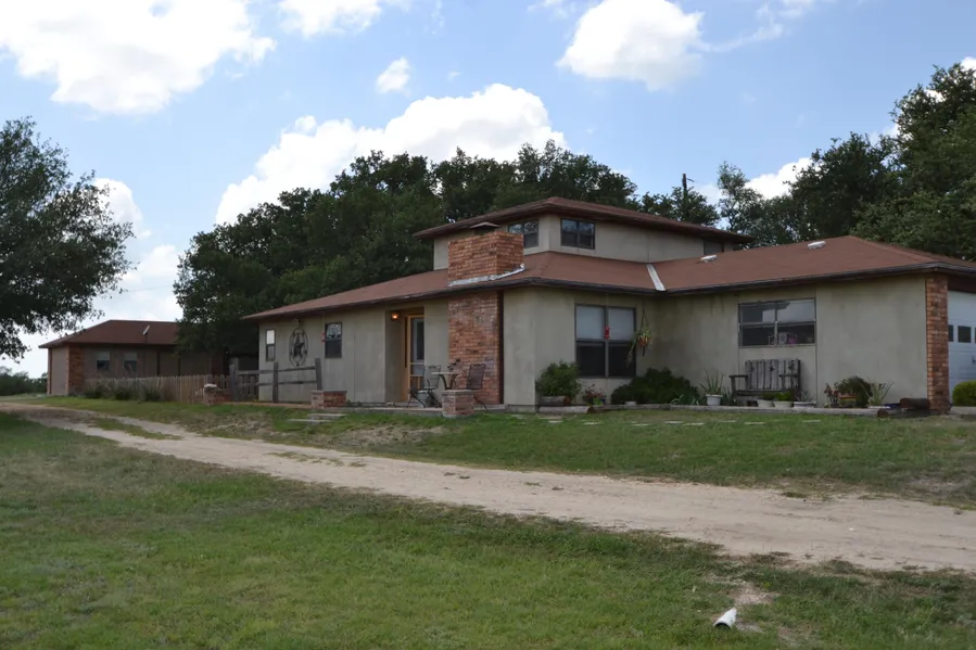 Looking for a ranch over in the Dublin area? This one is one to think about! It boasts a large 4/2/2, 1,896 square foot, two-story home plus a 560 square foot, 1/1 bunk house or guest house. Ranch amenities include 5 traps, a three stall horse barn, a two-stall loafing shed with water, a tank, and water is run to all the pastures. The home it's self is a roomy family home, being four bedrooms and two full bathrooms. The front door opens up to the roomy living room, which gives a rustic country feel about it. The flooring is carpet and there is a ceiling fan. The kitchen is attached, separated by a breakfast bar. The kitchen is clean and roomy, with beautiful oak wood cabinets. There is a built-in oven, an electric cooktop with a vent, recessed lighting, a ceiling fan, and pretty laminate flooring that looks like wood flooring. The pantry is a full room and is currently used as an office/pantry combo. The utility room is a separate room with both washer and dryer hookups. The electric water heater is located in this room as well. The utility room features a sink with counter space and under cabinet storage as well as cabinet storage above the washer/dryer area. The downstairs bathroom is also roomy with a full tub and large vanity with a single sink. Bedrooms #1, #2 & #3 are located downstairs. Both have ample room and are carpeted. The staircase leading upstairs has a rustic wood railing and carpeted stairs for a quiet walk. There is an updated full bath upstairs with a pretty granite vanity top. The master bedroom is upstairs and is also carpeted and is painted nicely in modern, yet rustic colors. Not only does this property have an appealing home but it has an appealing yard for entertaining with the large outdoor patio area situated under the shady and majestic oak trees. The one bedroom one bathroom bunk house is located past the patio area, making the patio area a central spot between the two residences. The bunk house could also be used as a mother-in-law or as a rental house. The acreage offers a mix of sandy and shale ground, plus dense cover for wildlife. Deer has been found here as well as other birds and wildlife indigenous to this area. With all this property has to offer, it definitely has HOME SWEET HOME written all over it!