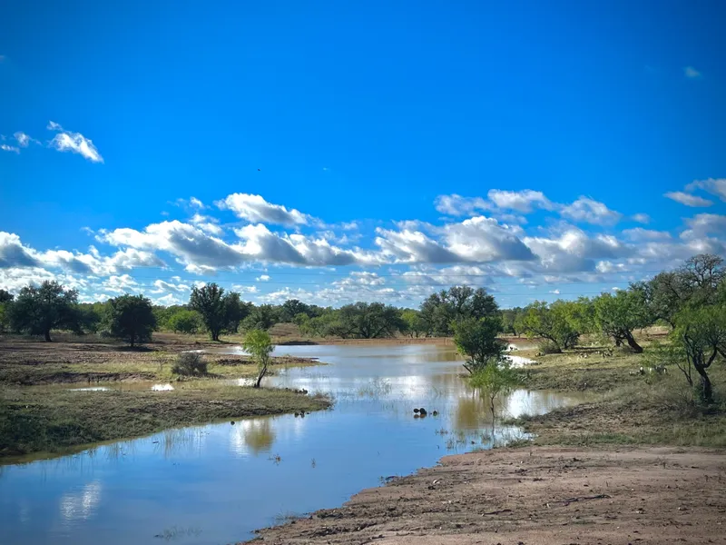 13 miles east of Mason, Texas (shops, restaurants, and medical clinic.)