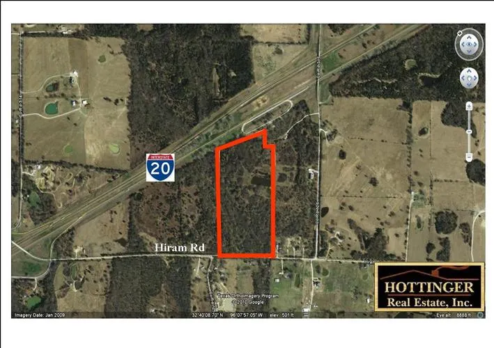 38.499 WOODED ACRES WITH FRONTAGE ON I-20 AND HIRAM RD. PROPERTY IS NEXT TO SEVERAL UPSCALE CUSTOM HOMES AND WOULD MAKE A GREAT HOMESITE OR DEVELOPMENT PROPERTY WITH EASY ACCESS TO DFW AND TYLER VIA I-20. UTILITIES ARE AVAILABLE AT THE ROAD. ADDITIONAL ACREAGE AVAILABLE.