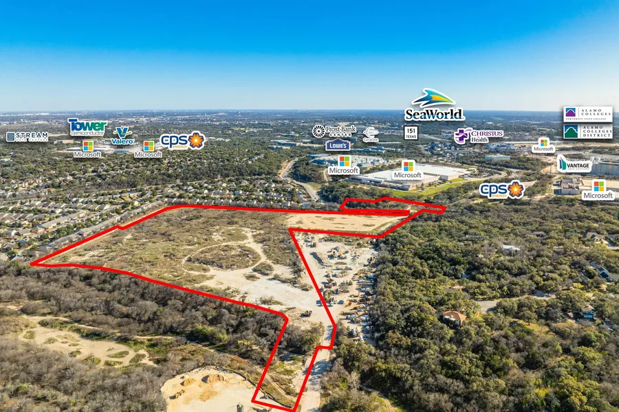The 38.691 acres is one of the largest remaining undeveloped tracts available in the Westover Hills area. The property is situated in the middle of 3 Microsoft data centers, with other company data centers just a few minutes away like Valero, Lowe's, Frost Bank, CyrusOne, Vantage, and more. The property is also just minutes from other major San Antonio establishments like Christus Santa Rosa Hospital, Northwest Vista College, SeaWorld, Hyatt Regency Hill Country Resort & Spa, and more. The Westover Hills area is also home to many large corporate campuses.