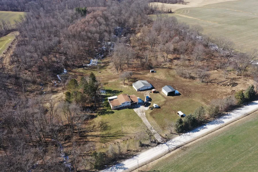 5+/- acres with a nice 3bd/2ba bi-level home. The home features 2 car attached garage, hardwood floors, sliding closet barn doors, and an enclosed sunroom. A nice back deck overlooks a large backyard. A couple outbuildings are perfect for all your storage needs. Great open and wooded areas ready for recreational use or hobby farm. The wooded acreage has excellent deer sign with plenty of trees to hang a couple deer stands. Tract 2 Description: