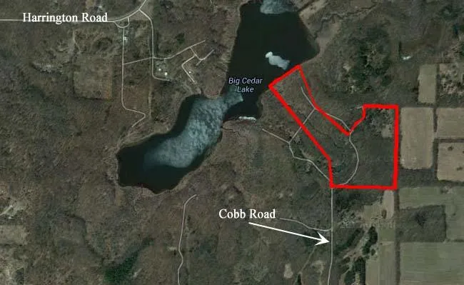 Price reduced $20,000 - Excellent hunting and fishing property - Secluded 38.89-acre parcel with 534 feet of private frontage on Big Cedar Lake. This tract exhibits level to rolling terrain and is mostly wooded. The southern half includes thick wetland cover types with a stream and a pond. The northern half consists of mixed hardwoods with a high ridge and possible 4-acres of tillable ground at the northeast corner. Several walkout building sites with nice wooded views across the ridge toward Big Cedar Lake. For added privacy, a large parcel of land to the north is preserved by conservation easement and restricts future development. The parcel also comes with a 1,300 square foot cabin setup for year round living or simply hunt camp.