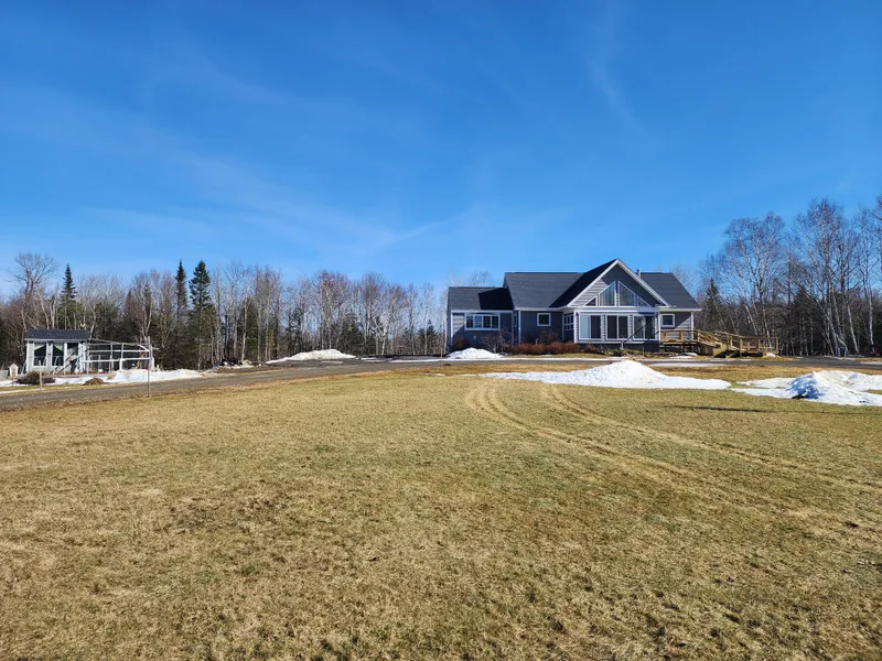Beautiful custom 2016 home on 52.5 acres with fields, woods, pond, guest cabin and more. The main level is spectacular with 3 bedrooms and 2.5 baths, custom kitchen and cathedral ceiling living room, with a 4 season sun porch in the back and 3 season sun porch in the front. The basement living space is not quite finished but offers giant bonus room with theatre area, bar, 2 more bedrooms and all this walks out into the backyard. This is a quiet road and the home is hidden back from the road for excellent privacy. Nearby to lakes, golf, snowmobiling and under 15 minutes to most services in a low tax town.