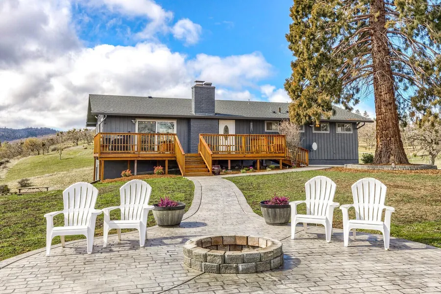 Welcome Home! Situated on 5+ acres and just a few miles to town sits this stunning 2 story family home. Perched on a beautiful south facing knoll, this entertainer's dream consists of 4 bedrooms, 3 bathrooms, open concept living, large outdoor gathering space and would make an incredible 2 family set-up. The main floor living area features a dream kitchen with custom cabinets, huge 4x10 ft gathering island, quartz countertops and gorgeous views from every angle. The master with attached bath, 2 more bedrooms and remodeled bathroom round out the main floor. Downstairs is the ultimate flex space which includes built in custom sequoia bar top, large living area with custom wood fireplace, gorgeous guest suite with new bathroom. This space would make an amazing overnight guest area, large family game room or extended family permanent living quarters. Custom stamped concrete, TID irrigation, outdoor fire pit, premium pad for future shop or barn and newly installed solar panels.