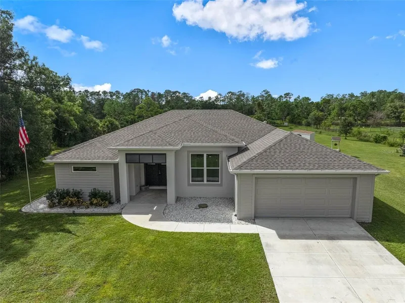 Equestrian Paradise in North Port Estates. Acreage: 3 acres. Zoning: AG (Agricultural) - Perfect for horse enthusiasts! Discover a rare gem in the North Port Estates, where country living meets modern convenience. This stunning Tenbusch-built home offers the perfect blend of elegance and functionality, nestled on 3 acres and located near a serene state park. Features: Equestrian-Friendly: Zoned AG with ample space to ride horses and enjoy the outdoors. Spacious Living: Open-concept layout connecting the living area and kitchen. Includes a coffee bar for your morning routine. Top-Quality Construction: Icynene spray foam insulation for energy efficiency. Impact windows and doors for safety and peace of mind. Versatile Design: Neutral color palette compliments a wide range of aesthetics. Family & Pet-Friendly: Plenty of space for pets, and outdoor activities. This property offers the ideal balance of privacy, luxury, and practicality with easy access to the natural beauty of the Myakkahatchee Creek Environmental Park. Whether you're a horse enthusiast, a hobbyist, or someone who enjoys serene outdoor living, this home has it all.