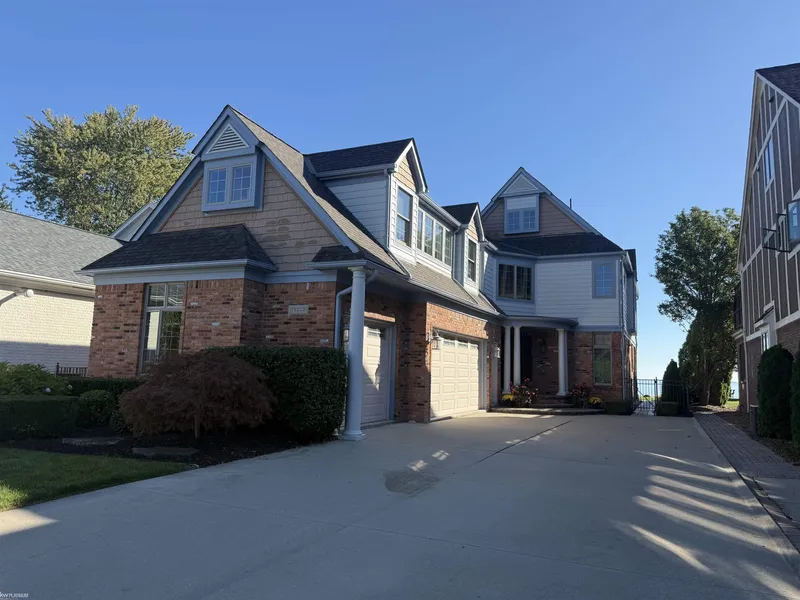 Welcome to your dream home! Nearly 4,000 square feet of elegance and comfort are set directly on the shores of Lake St. Clair. This 4-bedroom, 3.5-bath residence offers unparalleled lake views and custom features throughout. On the main level, enjoy sun-filled living spaces with hardwood floors, a dedicated office, a cozy den, and a spacious living room with expansive windows showcasing breathtaking lakefront views. The chef’s kitchen is complete with custom cabinetry, premium finishes, and a seamless flow to the patio and Trex deck, perfect for entertaining. The second level is anchored by a serene primary suite featuring panoramic water views, a spa-inspired full bath, and a generous walk-in closet. The additional bedrooms are equally spacious, including a large second bedroom with its own walk-in closet. The finished third level provides a versatile bonus retreat with a full bath — ideal for guests, a home gym, or creative studio. Outside, enjoy a fenced backyard, Trex decking, and a 3-car heated garage with abundant space for storage, hobbies, or toys. Every detail has been thoughtfully designed to maximize comfort, style, and function, all just steps from the lake.