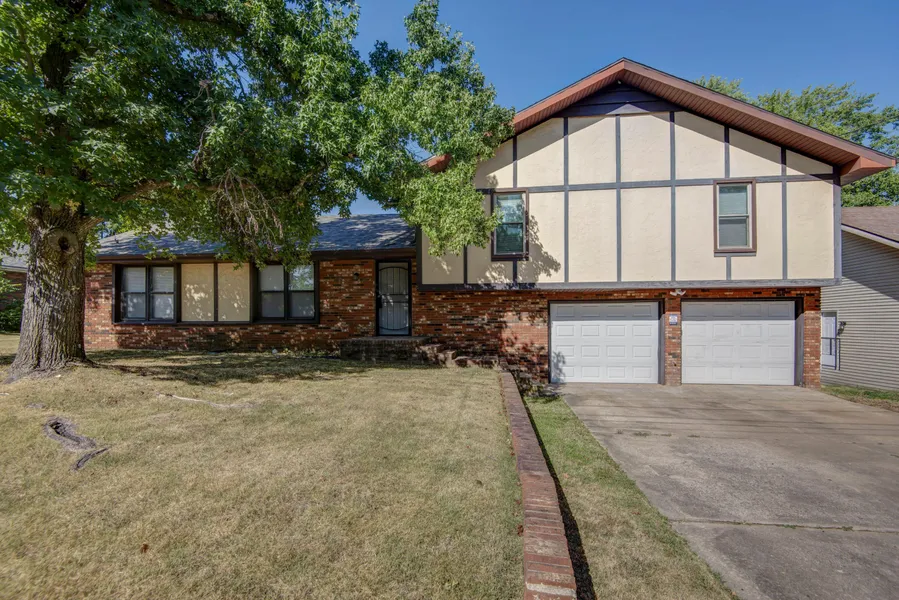 Welcome to this spacious split-level home featuring newer laminate flooring throughout. New roof was installed in 2024. Enjoy a large open kitchen with an oversized dining area--perfect for gatherings. The generous living room boasts a soaring beamed ceiling and a stunning rock fireplace, creating a warm and inviting atmosphere. Downstairs, you'll find a large utility room, an additional bonus room, and two sizable storage rooms located behind the oversized two-car garage--each with its own garage door and opener. Step outside to a large, privacy-fenced backyard complete with a patio and a storage shed--ideal for outdoor entertaining and extra storage. Don't miss this versatile home with ample space and charm. Schedule your showing today!