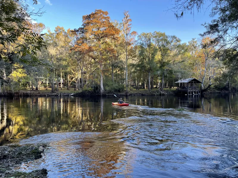 The 384+/- acre River Run Springs is one of the most unique properties in North Central Florida. The Santa Fe River is one of North Florida's most scenic rivers and the spring is one of the largest remaining in private hands. It is located in Gilchrist County, Florida, just 15 minutes from High Springs, the eco-tourism capital of the region, and less than an hour to Gainesville.Boasting enormous water resources including 1.5 miles of river frontage, a private spring, a 6-acre island, two fishponds, numerous cypress ponds, and two spring creeks that flow into the property. In addition, there are now water rights for up to three irrigation wells. Two private springheads are on the property - Florida Springs Gil928972 (a Magnitude 4 springhead) and Gil928971 (a Magnitude 3 springhead). The habitat with the freshwater and hardwood bottoms is a haven for all types of wildlife including deer, turkey, and ducks.There are numerous "signature spots" on this one property. Not only does it have a private spring, but it has one of only a few of the private islands on the Santa Fe. To access the island one drives through an ancient hardwood forest on a well-built road. From a timber aesthetic, the mature hardwoods, hammocks, and live oaks are exceptional. In the past, much of it was grazed by cattle giving much of the land a park-like feel.There are approximately 100 acres of cleared fields that were scheduled to be planted with Perennial Peanut Hay for income, aesthetics, and wildlife. Recently permitted for three new irrigation wells (10, 8 and 4 inch wells).The improvements on the island include a very rustic "cracker style" two-story cypress lodge, a matching cypress barn with living quarters, and a deck/dock. The 2,700 +/- sq. ft. main lodge is two bedrooms and four baths and is built out of cypress with pecky cypress lined on the interior of the lodge. The vaulted ceilings make way for an additional loft bedroom that overlooks the living room and a large limerock fireplace. In addition to the main lodge, there is a two-story stable with loft guest quarters and a three-horse stable on the bottom level. The guest quarters in the stable have two bedrooms, one bath, a living room, a kitchen, and a screened porch and deck. The improvements could use some updating and have seen only a little use for quite some time. An additional cottage, 780 sq. ft. with deck, overlooks views of the pasture. A 3,600 sq. ft. hay barn and workshop sits centered in the fenced pasture. On the north side of the property is a 924 sq. ft. house on stilts with two bedrooms and two baths. There is also a very nice newer cypress barn with an upstairs loft (heated/cooled) built by Cracker Log Homes. The improvements have deferred maintenance and have only seen little use. As such, we have heavily discounted the improvement value. With relatively nominal effort the improvements could be reinvigorated and returned to their former standing as one of the Flagship riverfront properties. There is currently no conservation easement on the propert