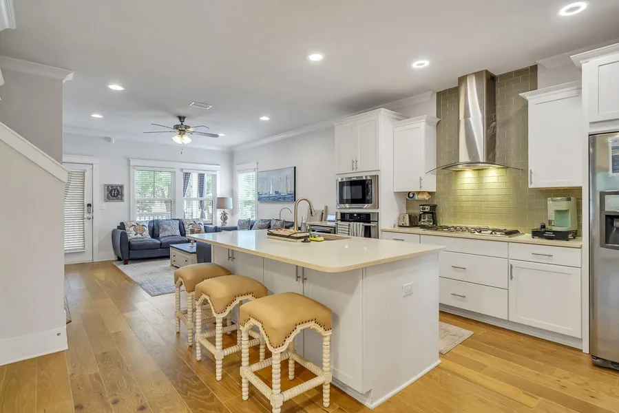 Pride of ownership shines in this beautiful 4bedroom/3.5 bath home featuring hardwood flooring throughout; quartz countertops in the kitchen and the bathrooms; a master bedroom on the main level with a second master bedroom upstairs. The chefs kitchen features a gas cooktop, glass tile backsplash, and stainless-steel appl. The open floor plan on the main level is great for entertaining, while the upstairs living area is perfect for movie night. Loads of storage space in this home, 3 of the 4 bedrooms have walk-in closets, additional storage closets on both levels. Enjoy game day on the outdoor TV on the large, covered porch and enjoy grilling in the fenced private backyard. This home is a perfect primary residence or solid vacation rental investment!