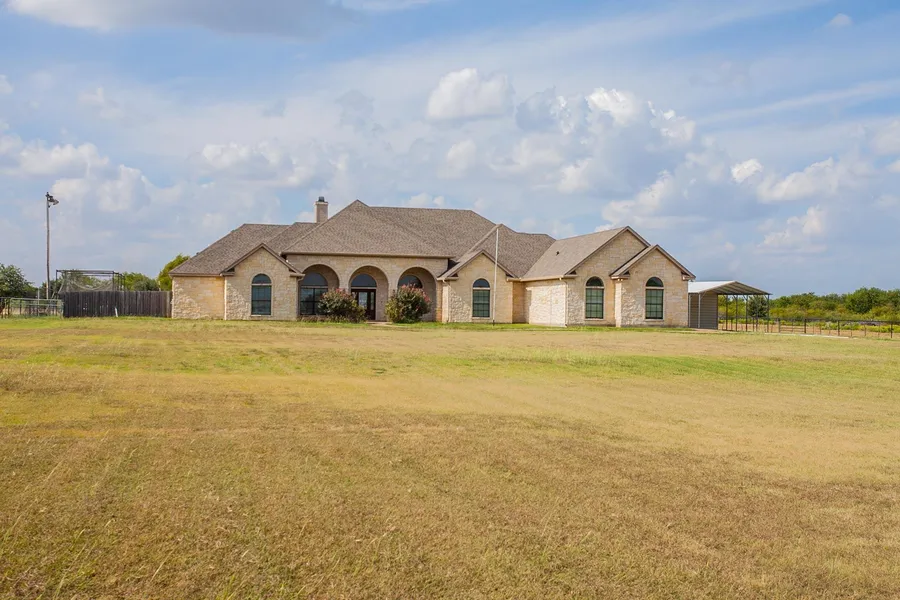 Remarkable 4 bedroom, 4.5 bath home w-2 car garage, in prestigious Midway ISD on almost 10 acres. Wide open entryway leading into spacious living area with windows covering the wall overlooking the pool and beautiful scenery of your backyard. Fabulous kitchen that features stainless steel appliances, gas cook-top, two sinks, granite counters overlooking the secondary living area. Great sized rooms throughout the home, master features windows overlooking gorgeous backyard, large bathroom w-walk in shower, whirlpool tub, dual vanities, ample storage space, oversized walk in closet and tv. Additional features include; large cover patio, in ground pool with hot tub, bbq area, second private patio, batting cages, storage shed, carport, a long driveway all on 9.93 beautiful acres.