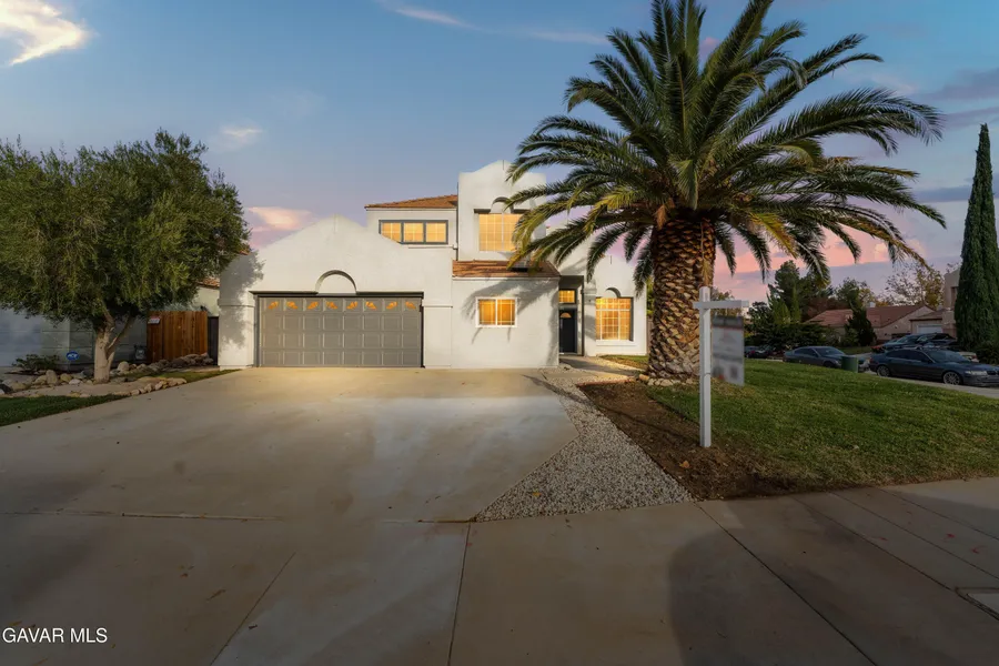 PAID OFF SOLAR!!! Stunning West Palmdale Pool Home -- Completely Remodeled! Welcome to this beautifully updated 4-bedroom, 3-bath home located in one of West Palmdale's most desirable neighborhoods. This property has been fully remodeled from top to bottom, featuring brand-new interior and exterior paint, new flooring throughout, and a gorgeous modern kitchen with new cabinets, sleek quartz countertops, new stailness steel appliances, and a massive island perfect for cooking, entertaining, and gathering. Step into the spacious living room showcasing a dramatic fireplace that creates the perfect focal point for cozy evenings. The floor plan offers generous natural light and excellent flow. Primary suite is a true retreat with a dramatic, spa-inspired bathroom featuring modern finishes and exceptional design. Three additional spacious bedrooms and two more full bathrooms provide comfort and style for the whole family. Enjoy summer days in your private sparkling pool, ideal for entertaining or relaxing. This prime West Palmdale location puts you minutes from top-rated schools, shopping, dining, and freeway access. A true move-in-ready gem -- don't miss this one!