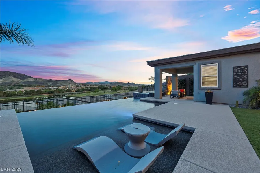 Welcome to The Outlook at Lake Las Vegas! Experience resort style living at the highest level.Developed to blend convenience w/ elegance, this home offers modern features on an elevated premium lot overlooking Reflection Bay GOLF COURSE with gorgeous LAKE & MOUNTAIN VIEWS.This home captures all the most desirable elements associated w/ luxury living & entertaining including oversized Pivot entry door w/ interior casing,2 linear fireplaces,quartz countertops,GE Profile appliances,upgraded porcelain flooring w/ natural stone tile accents,crown molding,wainscoting,modern custom interior doors w/ chrome accent trim,motorized blinds,heated Infinity edge swimming pool & raised spa with no rear neighbors, & more! Gated community w/ active Lake Las Vegas lifestyle including fine dining, boutique shops, biking, water sports, hiking, golf, pickleball & more.No expense was spared upgrading this home. Too many luxury features to mention: this one is a MUST SEE! Sports Club initiation fee included.