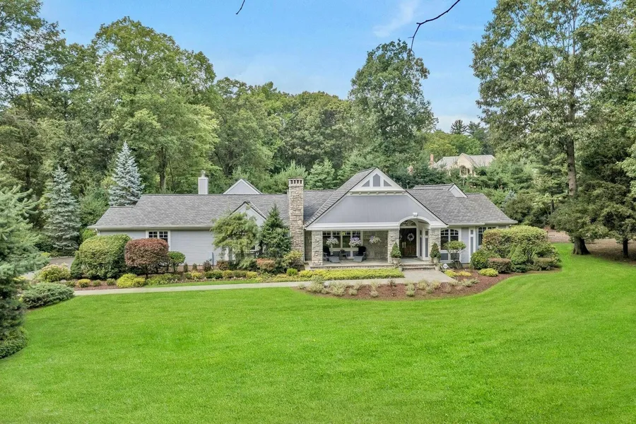 Nestled on a secluded private street, this luxury ranch home epitomizes serene living with its exquisite features and expansive layout. Boasting 3 full ensuite bedrooms and 3.5 bathrooms, each meticulously designed for comfort and elegance. A dedicated office space offers productivity amidst tranquility. The heart of the home unfolds into a spacious great room, complemented by a formal dining room and a distinguished living room, perfect for hosting guests or relaxing in style. Outside, the allure continues with mature landscaping framing the property, creating a natural sanctuary. A gunite pool glistens under the sun, inviting leisurely swims, while a beautiful patio provides a venue for al fresco dining and entertaining. Meandering pathways wind through the grounds, offering glimpses of lush gardens and secluded nooks for quiet reflection. This residence combines timeless architecture with modern amenities, promising a lifestyle of luxury and comfort in every detail.
