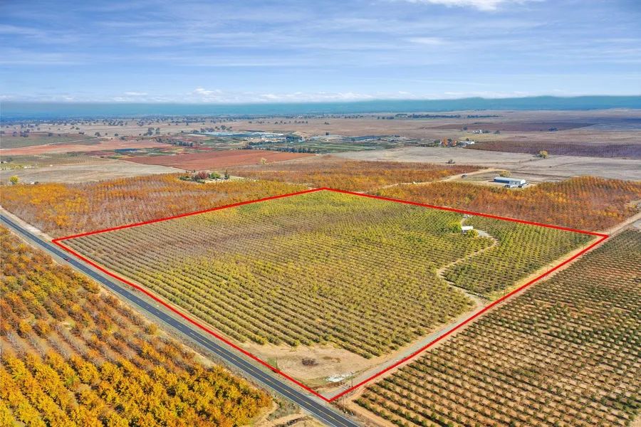 Independence almonds on Nemagaurd rootstock planted in 2017. 20x14 spacing with double line drip irrigation supplied by 50 hp submersible pump (new motor 2021) from well. Well produces approximately 400 gpm and irrigates the orchard in two sets. Includes 40x52 custom metal shop (built 2019) with LED lights and 1/2 bath and office/loft.