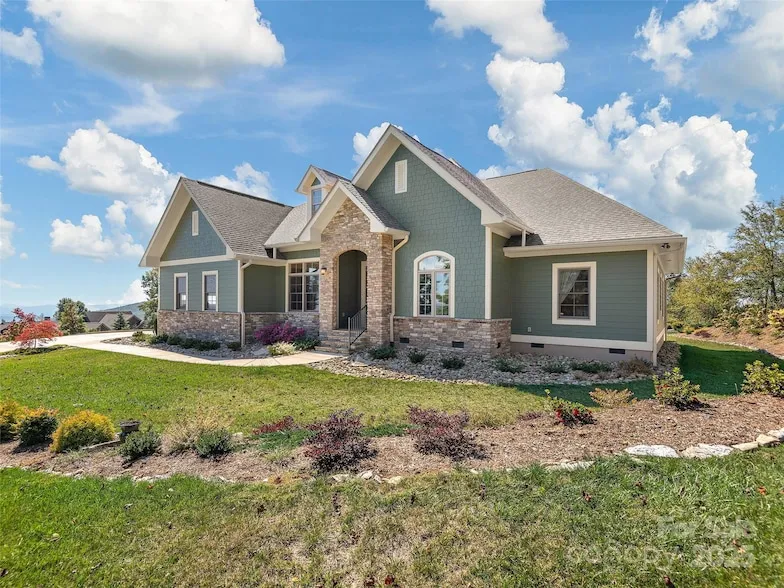 A "Mountain Manor" Reimagined for Modern, Manageable Living! This immaculate, SINGLE~LEVEL mountain-farmhouse blend is privately tucked off the main road on a full acre of gentle, usable yard space... offering the rare opportunity to enjoy both sunrise and sunset vistas from different perspectives. The spacious, open floor plan is mindfully designed for effortless flow, connecting the epicurean eat-in kitchen to the great room which features soaring windows, a stone fireplace, and seamless access to the covered outdoor living space which showcases expansive views of the western Blue Ridge Mountain Range. The ensuite primary bedroom and bath offer privacy and comfort with age-in-place design elements such as wide doorways, elevated counters, and a zero-entry shower. The beautifully appointed chef s kitchen highlights stunning quartzite counters, an oversized island with comfortable seating for 4, a 6 burner gas range with pot filler, farmhouse sink, extended cabinets with back lighting and glass doors, and a generously proportioned butler s pantry with custom cabinet storage and a full sized second refrigerator. Additional home highlights include hardwood floors, tankless water heater, 22kw Generac generator, whole-house surge protection, SimpliSafe system, LeafFilter gutters, coated garage floor, and transferable warranties. Home is offered fully furnished. Only two years young, this practically new mountain top gem is an absolute MUST SEE!