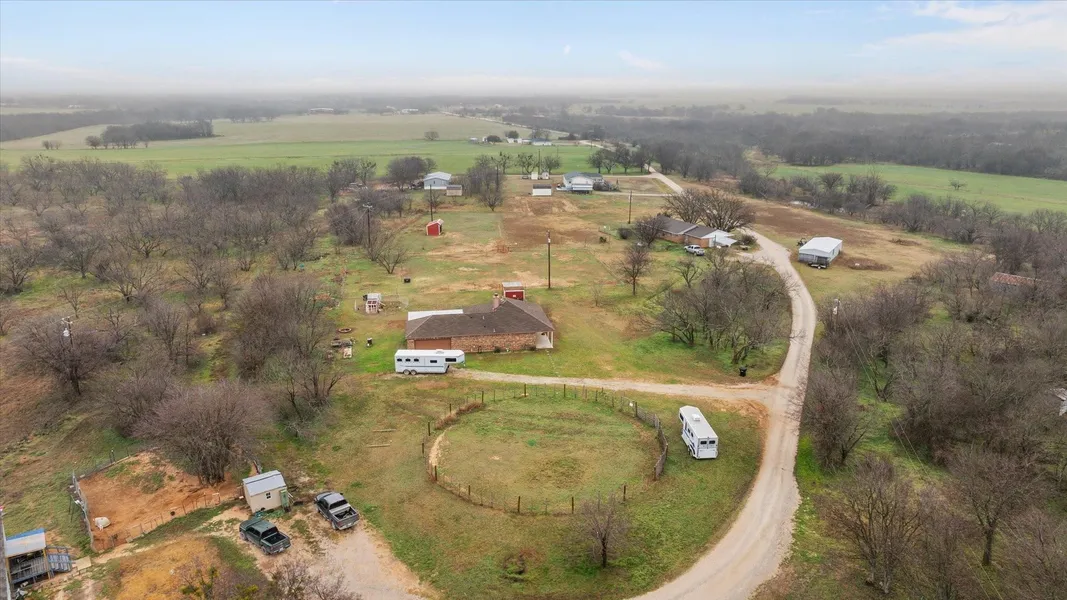 **Bring Your Horses!** This budget-friendly horse property spans 2.070 acres and is conveniently located just 15 minutes from the charming town of Mineral Wells, 30 minutes from Weatherford, and only an hour from Fort Worth and the Will Rogers Coliseum. The property includes nice sandy loam, a horse shed with electric-fenced pens and an 80 ft round pen for training your horses. And There's plenty of space to park a truck and trailer. The well-maintained brick home features three bedrooms and two bathrooms, all tucked down a private country road. Inside, you'll find an inviting open living room complete with a cozy wood-burning fireplace, as well as a dining area. A large 20 x 30 patio out the back door provides a wonderful outdoor space for entertaining. The two-car garage offers ample room for a full-size washer and dryer. Additionally, there's a chicken coop ready for you to start your farm and a storage shed for feed and tack.