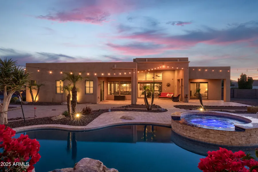 Three in One! Stunning Home, Backyard Oasis, and Versatile Shop/RV Garage. Nestled on a beautifully designed acre lot, this property accommodates all your needs with ample space for your dreams. The home features an open floor plan with a large kitchen, alder wood cabinets, and granite countertops. Enjoy diverse dining options with a kitchen nook, breakfast bar, or formal dining room. The great room boasts a cozy fireplace and floor-to-ceiling windows, extending indoor living to the covered patio and exquisite backyard. The backyard oasis includes a pool, spa, and ramada. Beyond the backyard, there's a spacious RV/Car/Toy garage, fully equipped for an adventurous lifestyle. Discover more with this special property. See document tab for details.