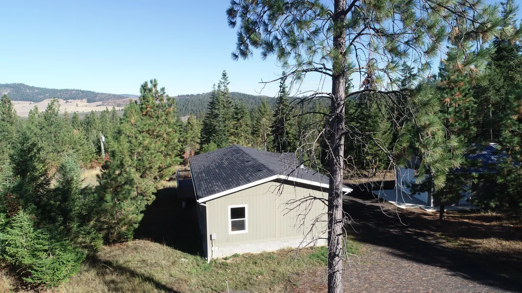5 acres with new manufactured home. 3 Bed 2 Bath 2 car garage. Wood Stove. Large deck wraps around three sides. Great place for animals. gardening, etc. Fairly secluded with timber. Good access to Hwy 95 Lots of potential No drivebys.