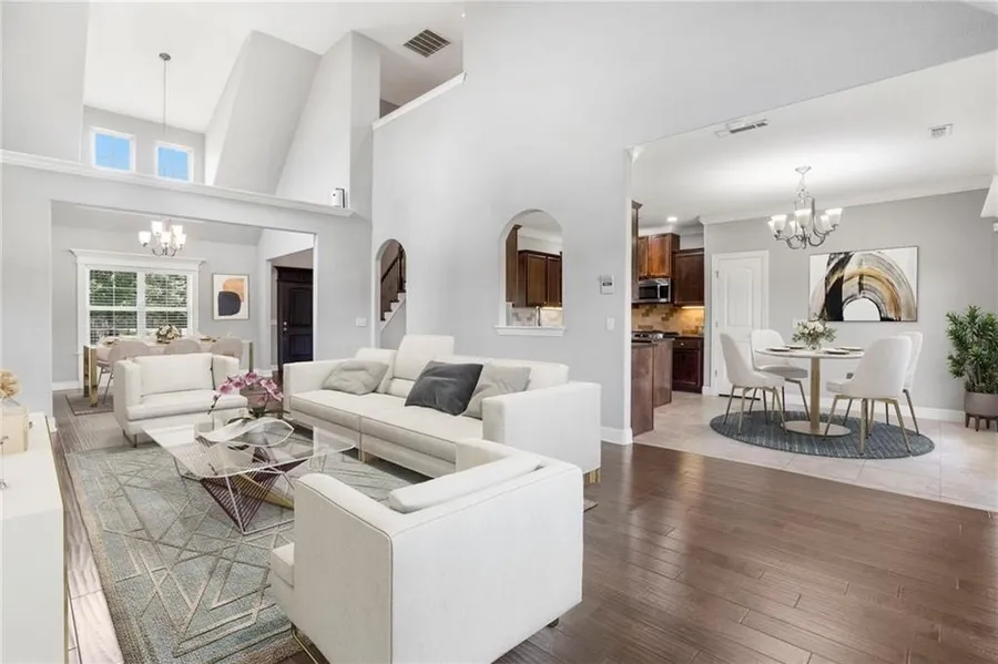 This two-level home boasts hand-scraped hardwood, crown molding, and a great floor plan for entertaining. The Owner's suite features not one but TWO walk-in closets. Enjoy the community Clubhouse and Pool or even the close Proximity to Shaw Park. Sellers are offering a home warranty with 2-10 with an acceptable offer. Whether you are a first time home buyer or looking to have more room, this would be a great move-in ready home for your family!
