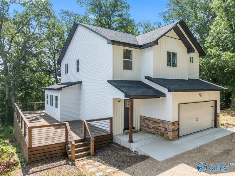 **NEW CONSTRUCTION** This exquisite home offers a spacious open floor plan and breathtaking views of Guntersville Lake. Designed for modern living, the home features expansive wrap around deck & windows that bring the outdoors in. 3 bedrooms and 3 baths - this home offers ample space for family and guests. Kitchen features tile backsplash, large island, with pendent lighting. The master suite, located for privacy, boasts trey ceiling, spacious walk-in closet and lake views. The other 2 bedrooms are connected with a Jack and Jill bath. Located just minutes from Guntersville's charming downtown. Located on a cul-de-sac, this home is the perfect private retreat. Tree house included!