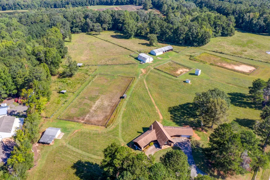 Enjoy more than 30 acres with a riding arena, two barns, fenced pastures, your own private pond, and a ranch-style home plus an upper loft level in northern Lamar County. The main residence offers views of the farm amenities from the large family room with cathedral ceilings and the kitchen. The home's two ensuite bedrooms are both on the main floor. The full basement has a second kitchen and separate access. The third level is a large loft area that looks down onto the naturally lit living room. Beyond the residence, you have the opportunity to renew a fantastic equestrian property. The large arena has a covered viewing deck. The first barn has seven stalls (all with individual lighting and water), small tack room, and feed room. The second barn offers a large, covered storage area, a large tack room, and an efficiency apartment. The fenced pastures are all connected to the property's well water. A 3/4 +/-acre pond sits the back of the property surrounded by trees. If you're looking to establish a prominent equestrian property in Lamar County, this is the best place for you to start.