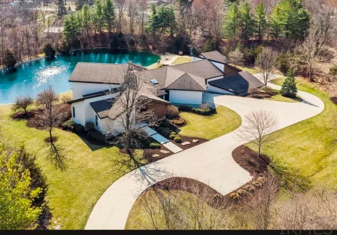 Open House Sunday June 5th 1pm-3pm online & Public Auction w/ reserve June 9th at 6:00pm. No open house on May 8th. Nestled among mature flowering trees, rare 5-bedroom 4.5 bath, 4.76-acre private retreat is a nature-lover???s dream. Equally stunning views inside and out, this modern home offers serenity, security, and a sense of home in a country atmosphere, while being conveniently located in the city. Private drive leads to a striking front entrance of this newly redesigned contemporary all-brick beauty. Walking through the front door, the open-concept design showcases some of the home???s best features, a great room fireplace spanning floor-to-ceiling, expansive windows carefully placed at intriguing angles allowing for beautiful views and natural light to pour through into the living spaces, dining room, solarium, and sunroom. The kitchen is the heart of the home, has been completely updated with all new appliances, natural Quartzite Island, Dutch Made cabinets, custom vent hood. The contemporary dark trim throughout the home provides a dramatic contrast to the modern stylings and impeccable lighting and flooring choices. The main floor office is complete with a Murphy bed and the hall bathroom has a marble floating vanity and mother-of-pearl tile tub surround. The laundry room features quartz countertops and a custom floor, and is ready for a washer, dryer, and steam closet. Unique, custom touches abound, as showcased in the impeccable owner???s suite, which boasts a fireplace, sitting area, dual master closets, custom shower and bath, and its own covered entrance onto the 1,300 square foot deck overlooking the fully stocked pond. This home is also equipped with a main floor guest suite with a private bath. The main floor living quarters are 4,596 square feet, with a 23??22 sf two car garage all sitting atop a 20-car lower garage. The lower level contains 1,421 square feet of finished space, with a separate HVAC, its own office and laundry, guest room, and bathroom, adjoining 5,418 square feet of garage space, which could be used for multiple home businesses. This impressive executive estate also features a walkout from the lower level, with a hot tub and spectacular backyard views, separate pool house that could be easily converted to a patio bar or guest home.