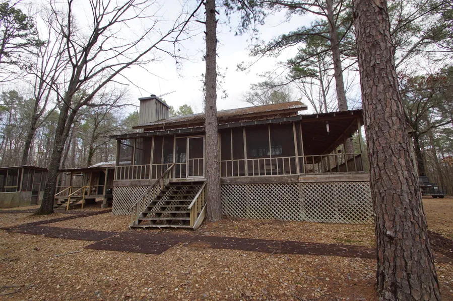 8 enclosed shooting houses overlooking food plots plus numerous metal ladder stands located in timber and wildlife travel corridors